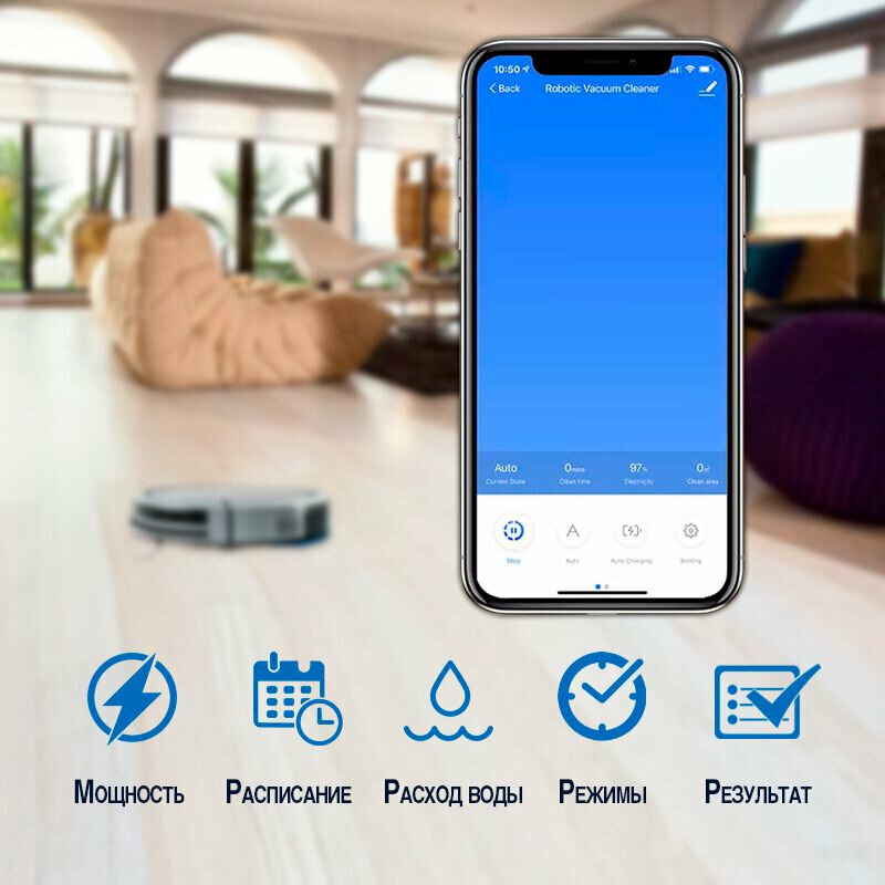 | Особенности | автоматическая работа, уборка по расписанию, управление со смартфона, LED-дисплей, боковые щетки, датчик обнаружения препятствий, датчик перепада высоты, мягкий бампер |