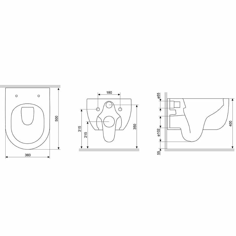 | Глубина унитаза | 500.000 |