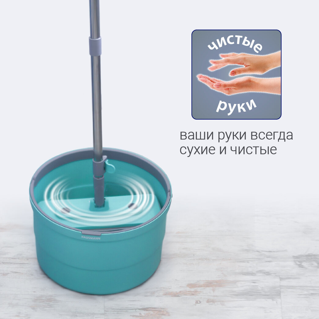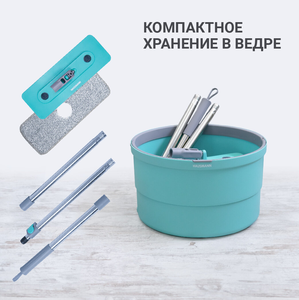 Комплект для влажной уборки пола Hausmann Virginia: швабра и ведро с системой отжима (HM-S-02)