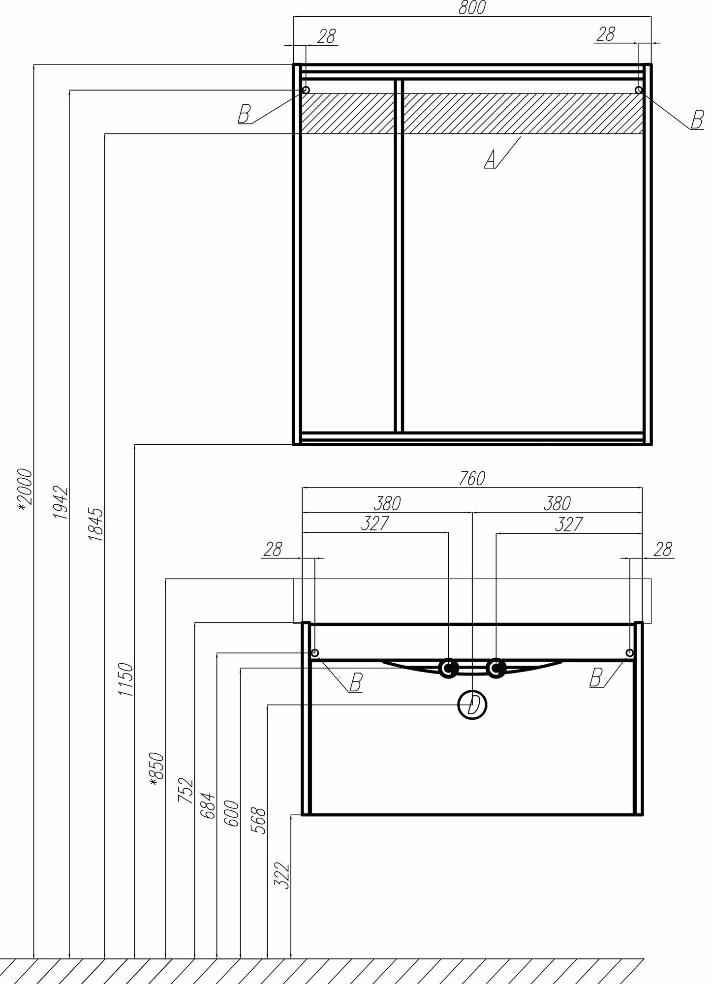 - Габариты (ШxВxГ): 800x850x150 мм.