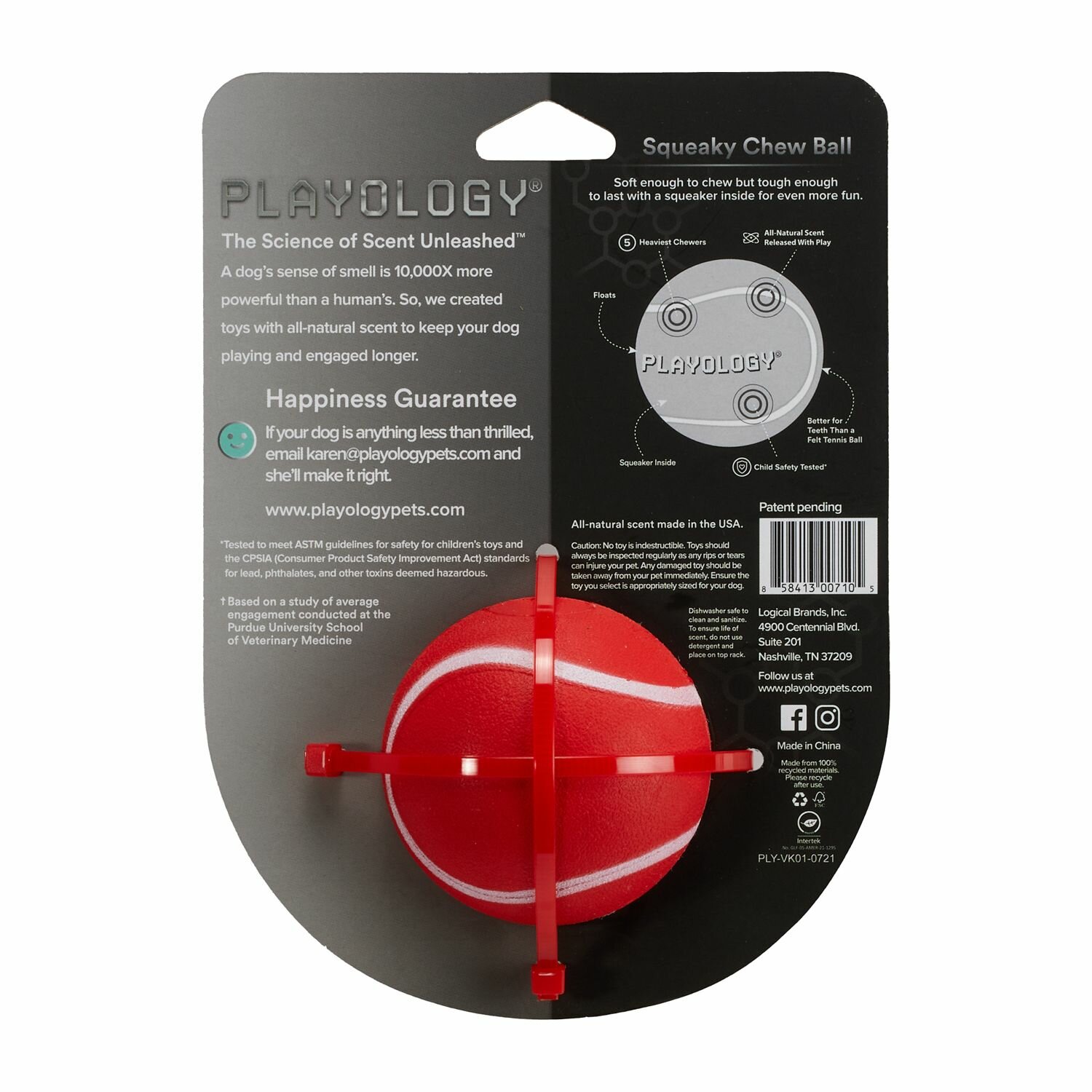 Playology Игрушка для собакPlayology жевательный мяч SQUEAKY CHEW BALL 6 см для собак мелких и средних пород с пищалкой и с ароматом говядины, цвет красныйPlayology ® разрабатывает ароматизированные игрушки, изготовленные из безопасных для собак материалов, которые занимают собаку в 7 раз дольше, чем игрушка без запаха. В основу каждой игрушки заложена технология «вживленного аромата» (ENCAPSISCENT®), ароматизированные частицы по запатентованной формуле буквально внедрены на микроскопическом уровне в прочный материал игрушек, будь то резина или текстиль, что делает их абсолютно уникальными и долго сохраняющими аромат. Жевательный мяч SQUEAKY CHEW BALL 6 см с пищалкой подходит для мало и умеренно грызущих взрослых собак всех возрастов (от 4,5 кг и более). Обратите внимание: нет неразрушимых игрушек, любую игрушку следует регулярно осматривать и забирать, если игрушка повреждена, чтобы исключить травмирование питомца. Убедитесь, что выбранная вами игрушка подходит по размеру и темпераменту вашей собаки. Не подлежит обязательной сертификации.СоставРезина