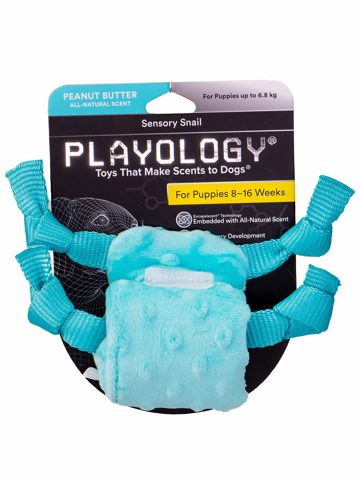 Playology сенсорная плюшевая улитка PUPPY SENSORY SNAIL для щенков мелких и средних пород 8-16 недель с ароматом арахиса, цвет голубой разрабатывает ароматизированные игрушки, изготовленные из безопасных для собак материалов, которые занимают собаку в 7 раз дольше, чем игрушка без запаха. В основу каждой игрушки заложена технология «вживленного аромата» (ENCAPSISCENT), ароматизированные частицы по запатентованной формуле буквально внедрены на микроскопическом уровне в прочный материал игрушек, будь то резина или текстиль, что делает их абсолютно уникальными и долго сохраняющими аромат. Плюшевая пружинистая игрушка PUPPY SENSORY SNAIL непременно привлечет питомца своим ароматом и тактильно. Сенсорные игрушки для щенков разработаны с уникальными текстурами и звуками, которые способствуют раннему сенсорному развитию питомца. Подходит для щенков 8-16 недель (весом до 6,8 кг) в период прорезывания зубов для интерактивных игр. Выпускается с различными аппетитными ароматами, что позволяет найти комбинацию, которая наилучшим образом соответствует размеру и пристрастиям вашей собаки. Обратите внимание: нет неразрушимых игрушек, любую игрушку следует регулярно осматривать и забирать, если игрушка повреждена, чтобы исключить травмирование питомца. Убедитесь, что выбранная вами игрушка подходит по размеру и темпераменту вашей собаки. Не подлежит обязательной сертификации.СоставТкань/Полиэстер