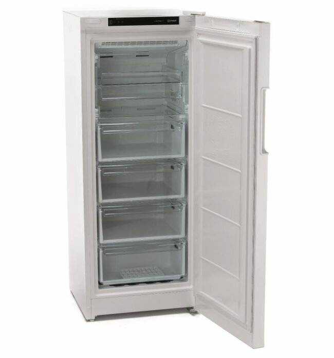 Морозильную камеру Indesit отличных помощник в вопросах длительного хранения продуктов. Общий полезный объем составляет 204 л, мощность замораживания – 10 кг продуктов в сутки. Устройство оснащено электронной панелью управления и технологией No Frost.