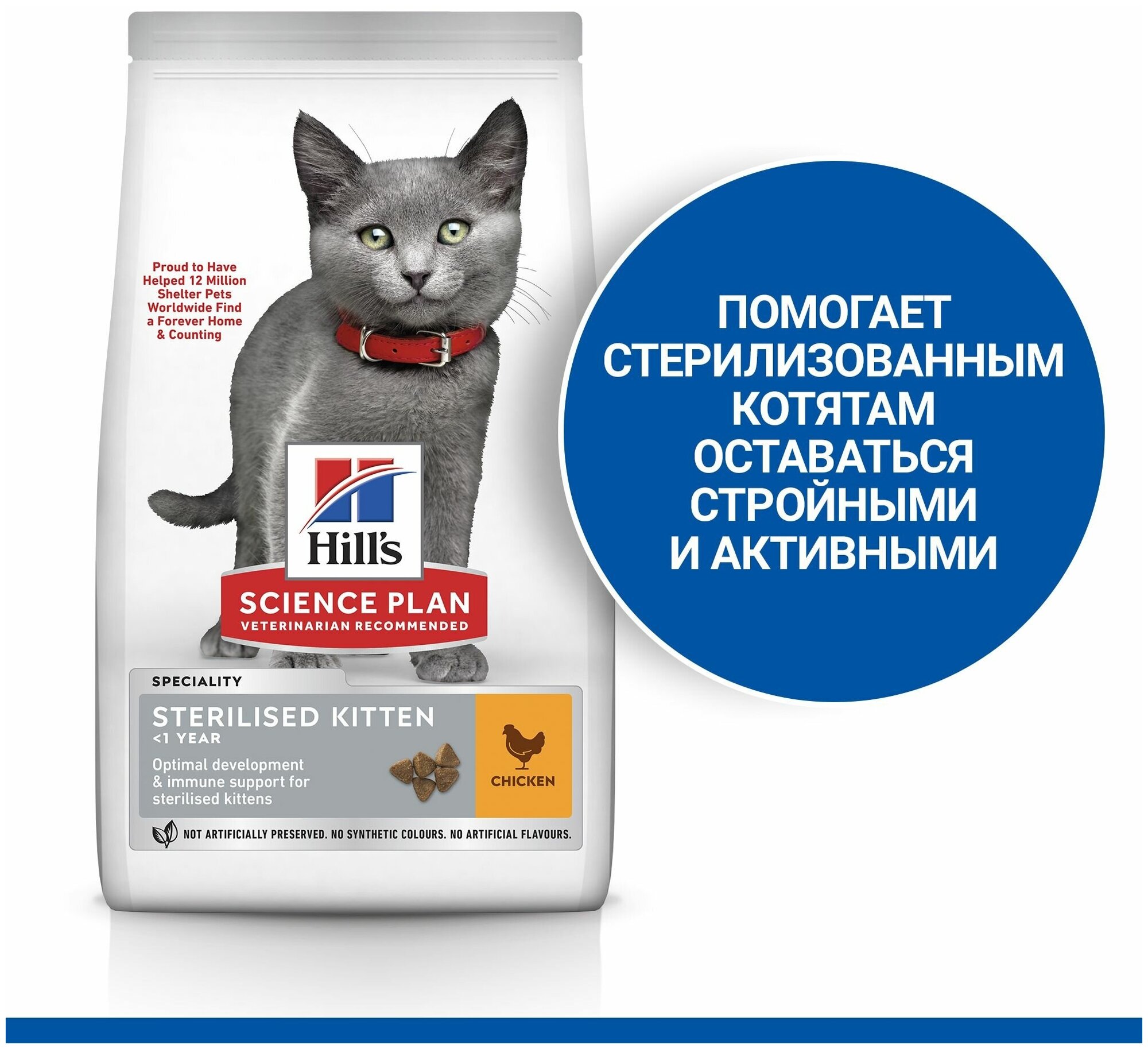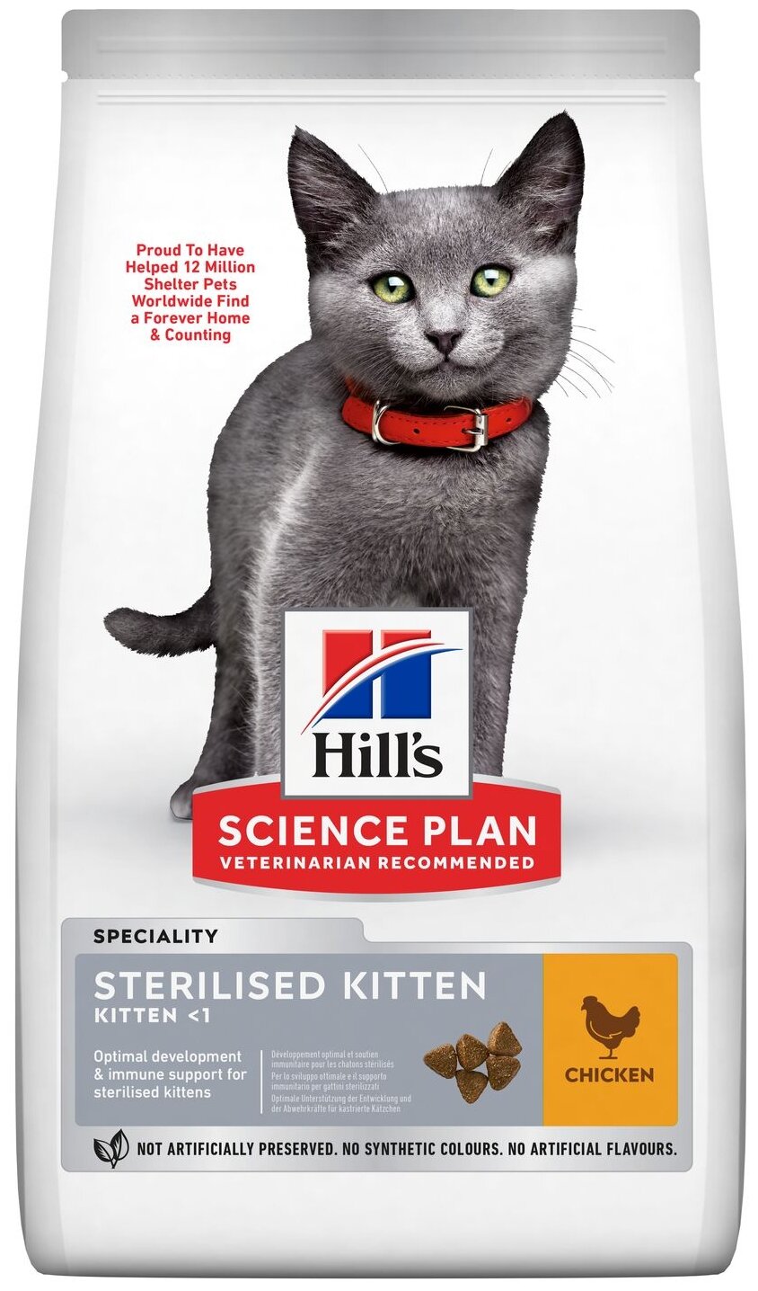 Сухой корм для стерилизованных котят HILL'S SCIENCE PLAN - это полноценное и сбалансированное питание с восхитительным вкусом для оптимального развития и поддержания иммунитета стерилизованных котят, для здорового роста и полного раскрытия заложенного потенциала.