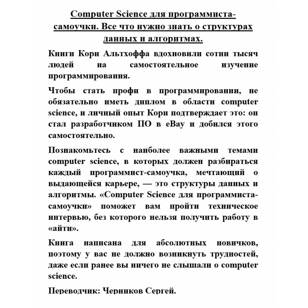 Computer Science для программиста-самоучки. Все что нужно знать о структурах данных и алгоритмах (Кори АльтхоффКори Альтхофф); Питер, 2023