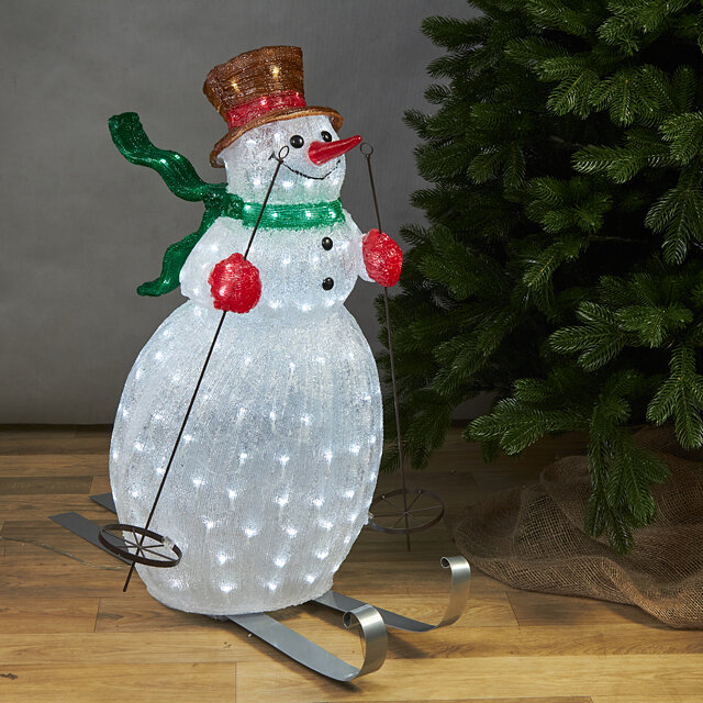 Это только кажется, что стоит на одном месте! На самом деле он, с грациозной лёгкостью, стремительно скользит навстречу весёлым приключениям, оттого и улыбается так мечтательно и заразительно, и светится весёлыми огоньками! А лыжи-то какие у этого чудесного Снеговика - настоящий винтаж! Характеристики: Высота - 85 см Материал - акрил 200 холодных белых LED-огней Подводка - 5 м Изделие полностью гидроизоливано IP 44, может быть использовано как внутри, так и вне помещений Производитель KAEMINGK, Голландия Производство размещено в Китае