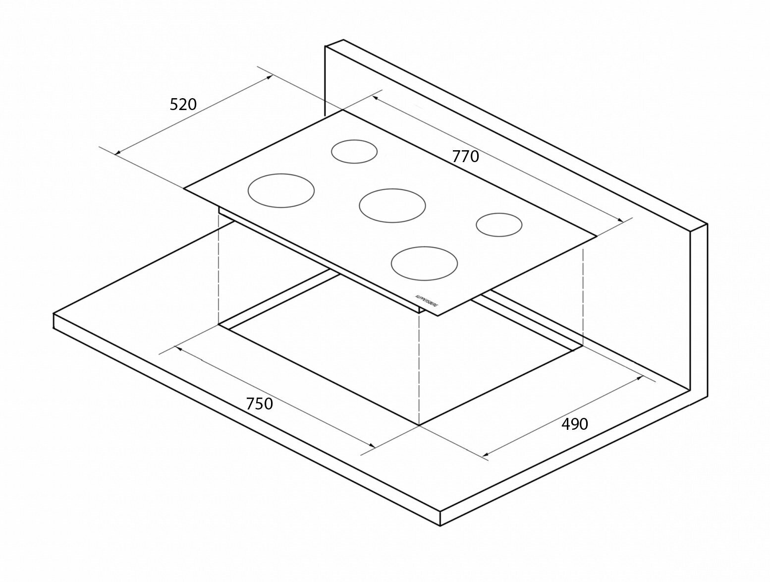 Размер ниши для встраивания (ШхГ), мм: 750x490
