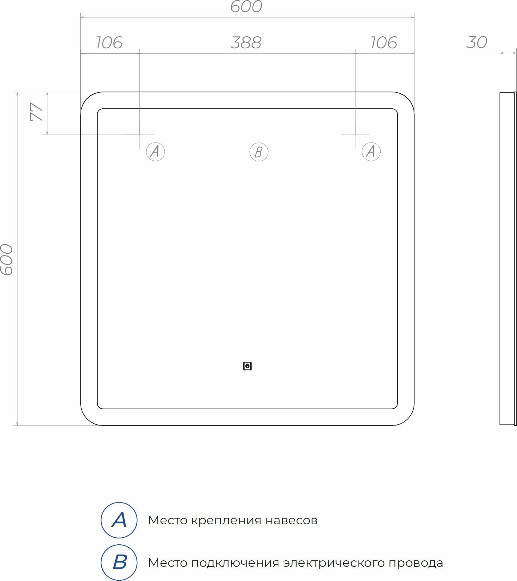 | Оснащение зеркала | С выключателем, с подсветкой |