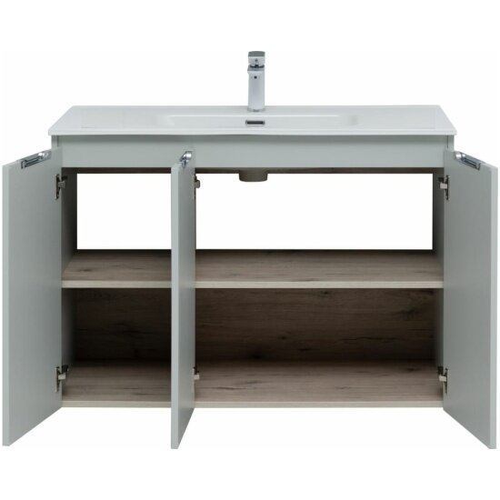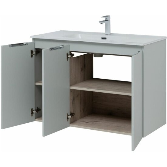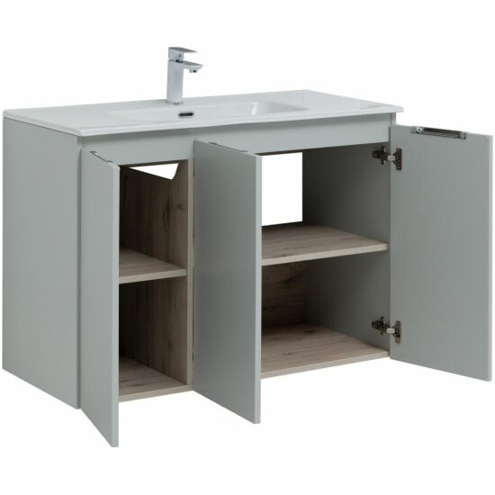 Подвесная тумба с раковиной Aquanet Алвита New Алвита New 100 в Модерн стиле - идеальное дополнение вашего интерьерного решения. Этот стильный и функциональный комплект тумбы с раковиной 101 см подойдет для просторной ванной комнаты. Материал корпуса изготовлен из ЛДСП, а фасад выполнены из влагостойкого ЛДСП. Система хранения С дверками обеспечит удобство по размещению ванных принадлежностей, а так же легкому доступу к ним. Тумба выполнена в элегантном цвете: серый, который придаст изысканность вашей ванной комнате. Благодаря своему дизайну Тумба с раковиной Aquanet Алвита New 100 3 дверцы, серая станет изюминкой вашей ванной комнаты.