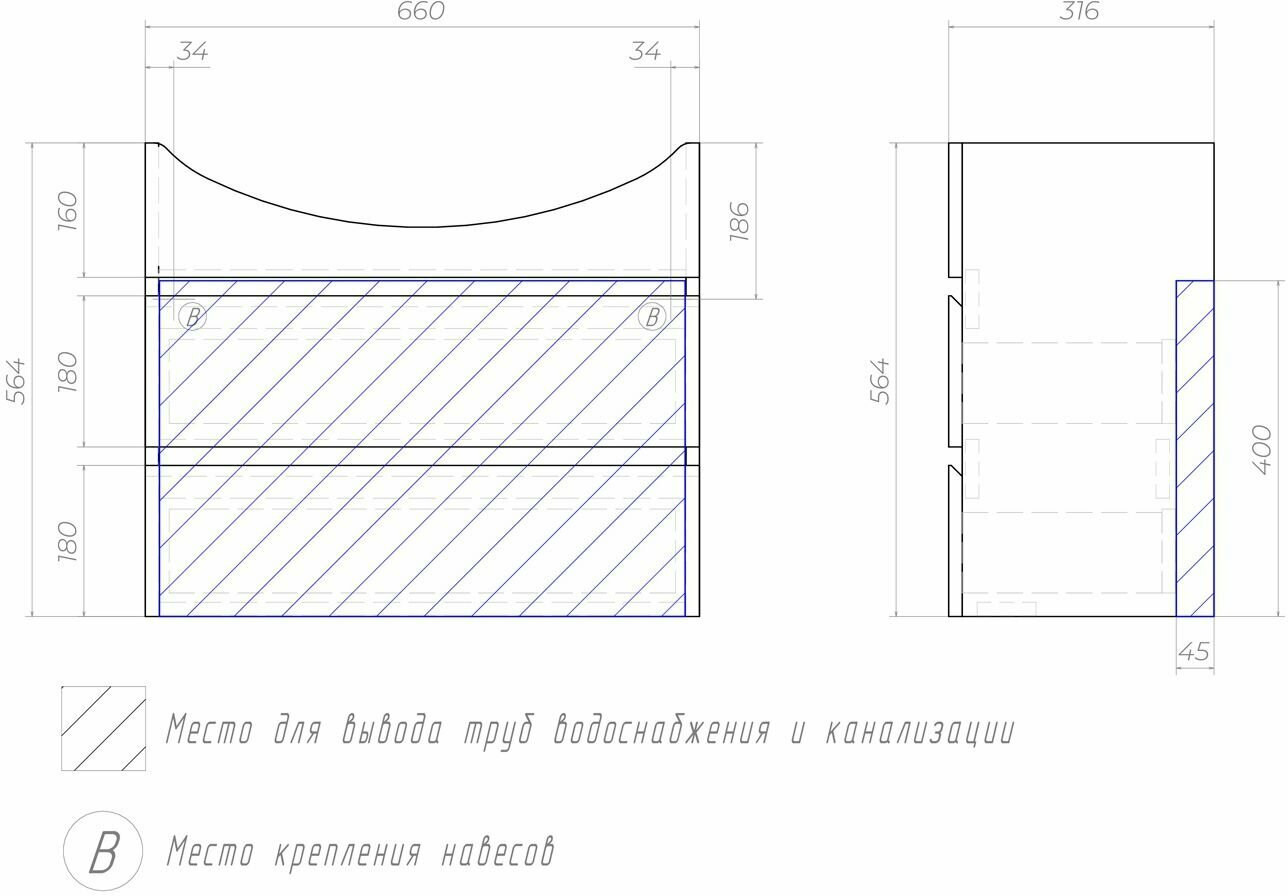 - Габариты корпуса тумбы (ШхГхВ): 66x31,6x52,2 см.