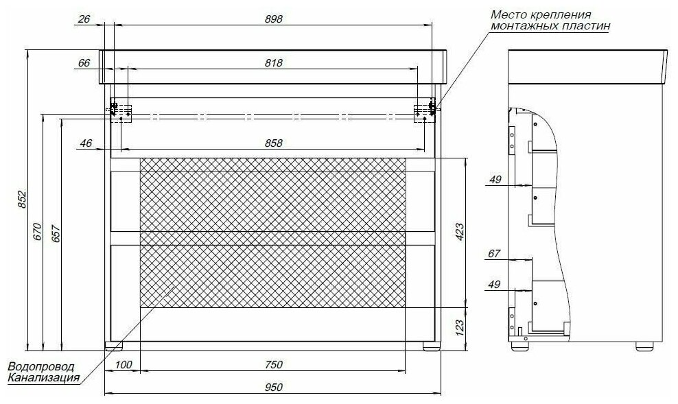 | Тип устанавливаемой раковины | Полувстраиваемая |
