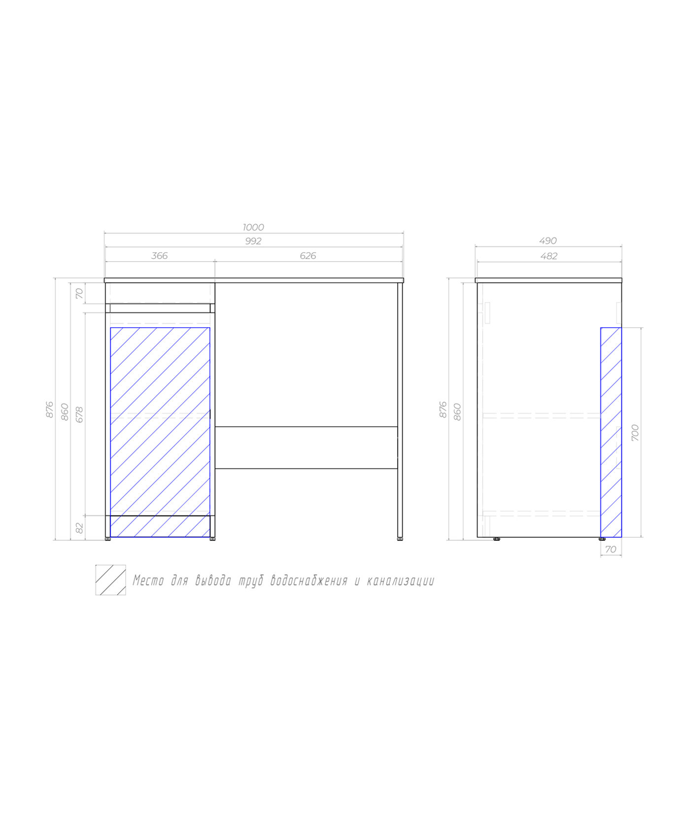 - Система хранения: распашная дверка, полка внутри.