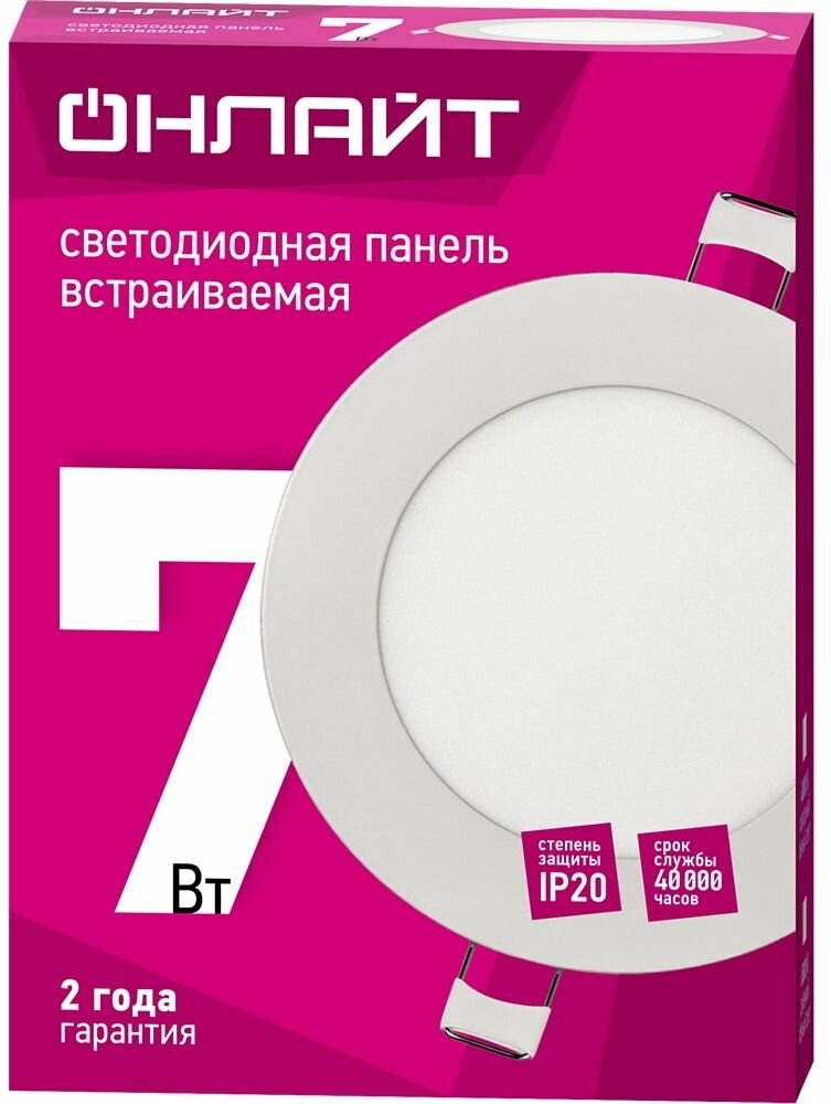 Встраиваемая ультратонкая панель торговой марки ?Онлайт? предназначена для общего и декоративного освещения жилых, административно-общественных и производственных помещений. Срок службы 40000 часов. Гарантия 2 года