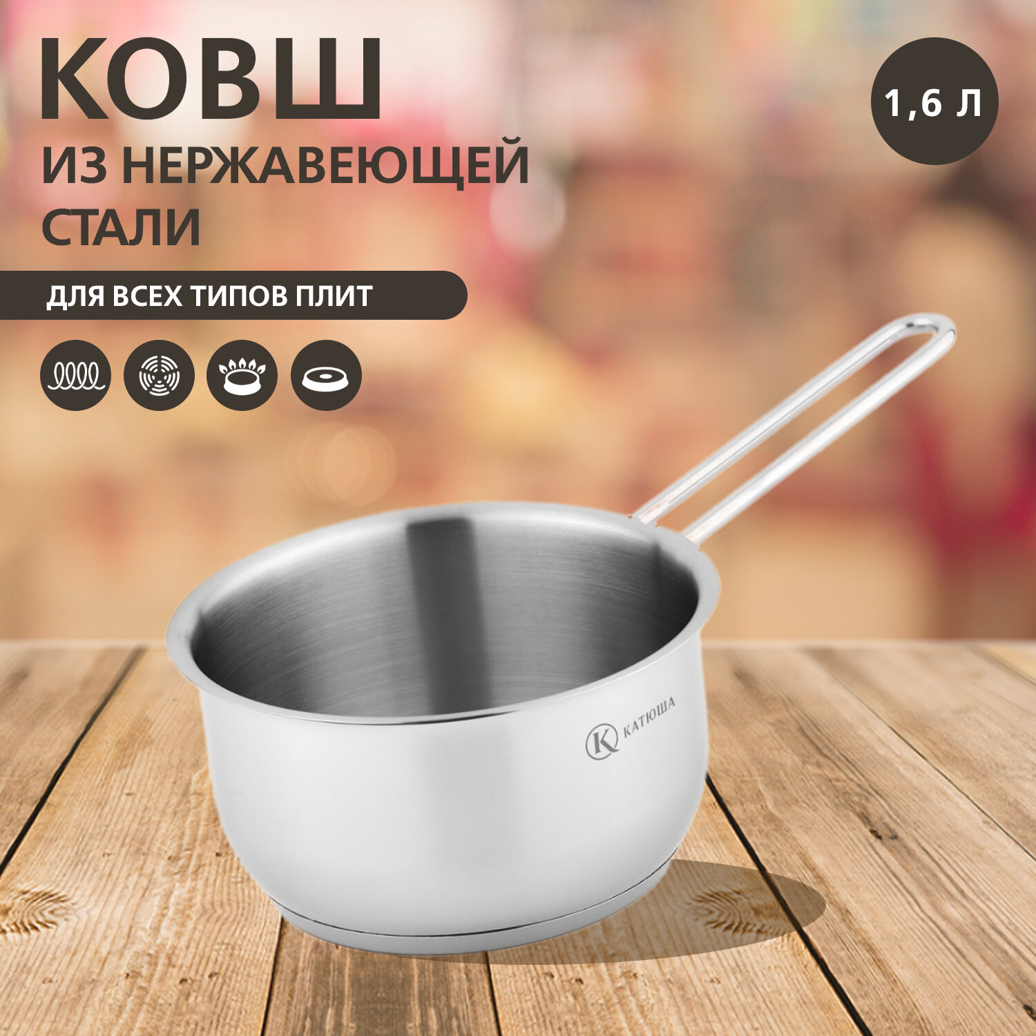 ковш КАТЮША Марта 16л 16см нерж.сталь индукция (110-16-0)