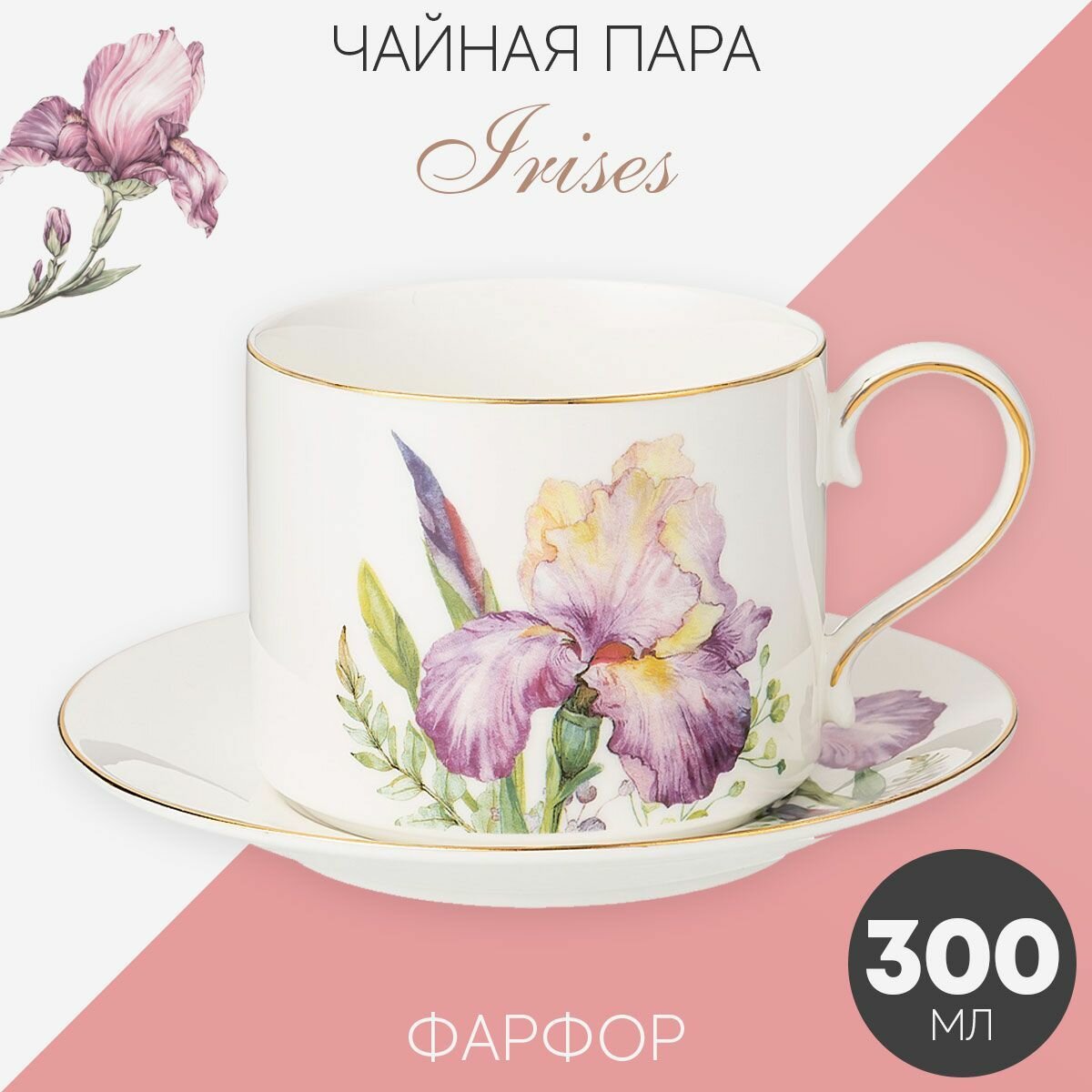 TM Lefard коллекция "Ирис" - это эксклюзивная коллекция нежных ирисов на модных формах с золотой окантовкой. Первый цветок ириса появился где-то в юго-восточной Азии в древние времена. Ирис был так красив, что им любовались и звери, и птицы, и воды, и ветры. Они разнесли семена этого необычного цветка по всему миру. И теперь благодаря им мы любуемся разнообразием этих красивых цветов. Качественный тонкостенный фарфор, "живые" натуральные цвета декора, красочная упаковка делают предметы коллекции прекрасным подарком к любому случаю. Продукция сертифицирована. Безопасна для контакта с пищевыми продуктами. Нельзя ставить в микроволновую печь, не рекомендуется мыть в посудомоечной машине.
