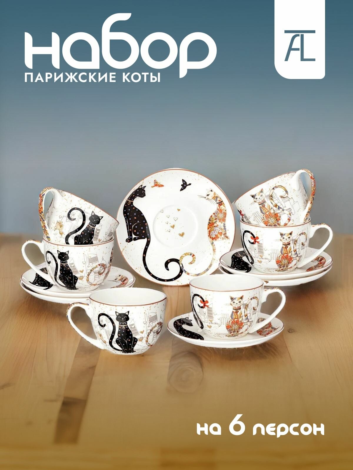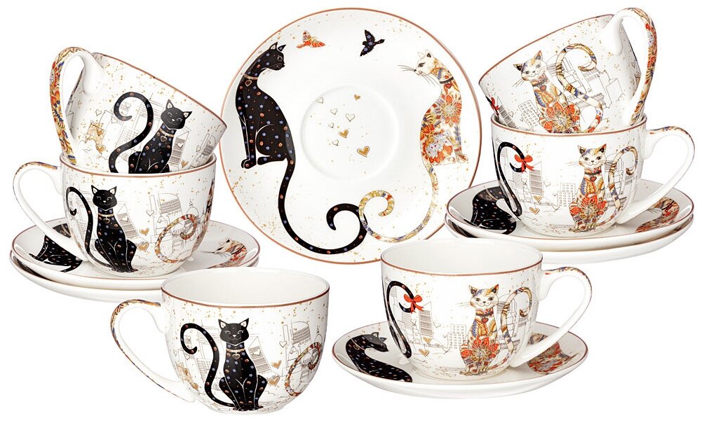 набор чайный LEFARD Парижские коты 6/12 330мл фарфор (104-924)