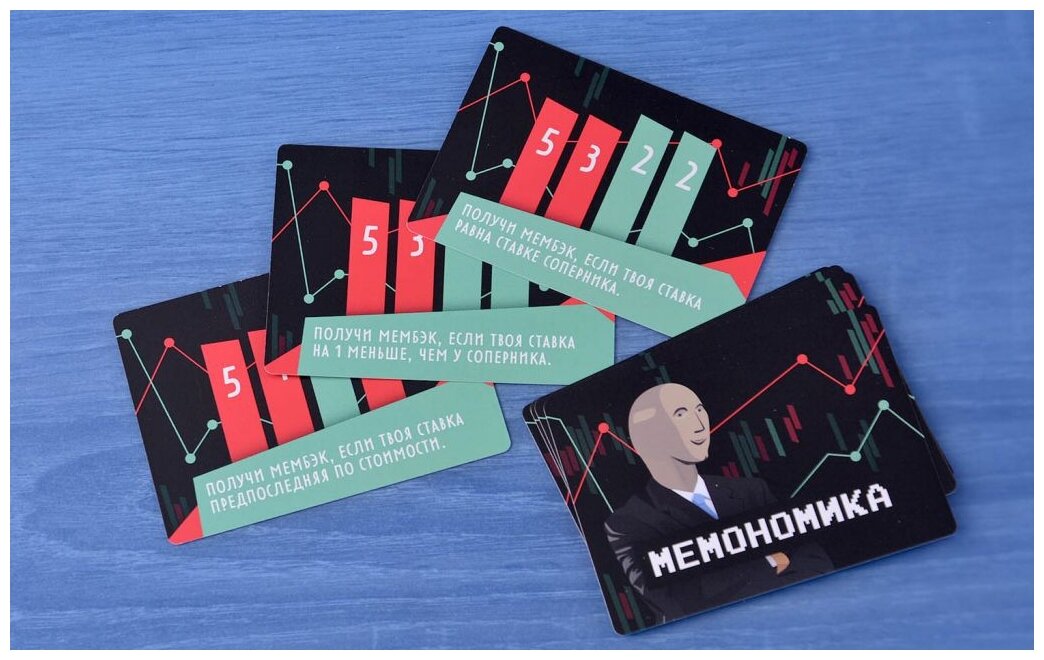 Давайте представим, что было бы, если бы мемы превратились в самые настоящие экономические активы! Какая ситуация была бы на рынке смешных бумаг? Что принесло бы больше финансовой выгоды: проверенная классика или современная тёмная лошадка? Во что вкладывались бы в 2022 году? "Мемономика" поможет вам ответить на эти вопросы! А точнее, смоделировать настоящую мемную биржу вместе с друзьями. Каждый ход вы будете инвестировать в те или иные мемы, делать ставки и пополнять свои коллекции ценными приобретениями. Самые расчётливые экономисты также будут получать мембэк за свои биржевые вложения. Ну что, готовы поднять свой первый миллион на мемах?