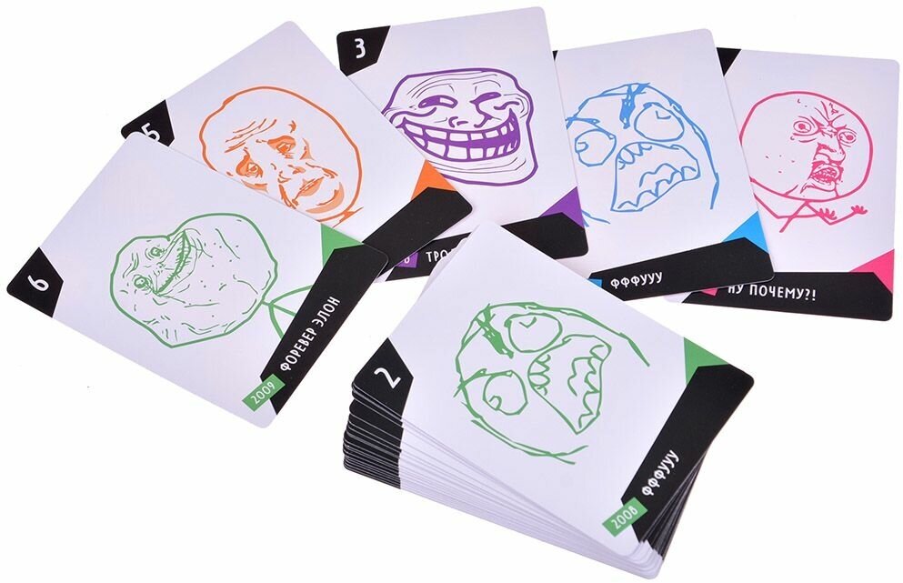 | Комплектация | 50 карт мемов, 25 карт игроков, 10 карт биржи, Карта первого игрока, Правила игры |