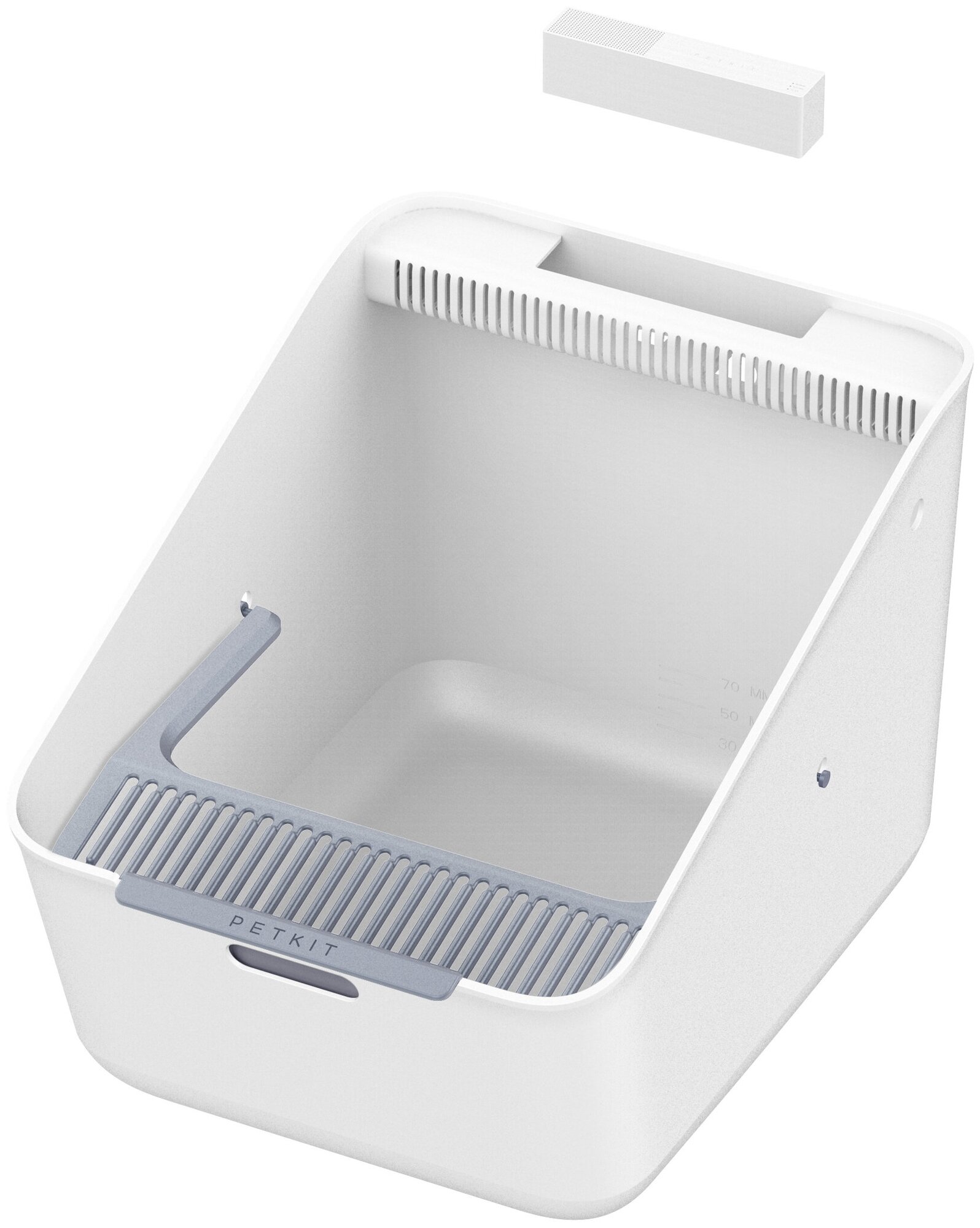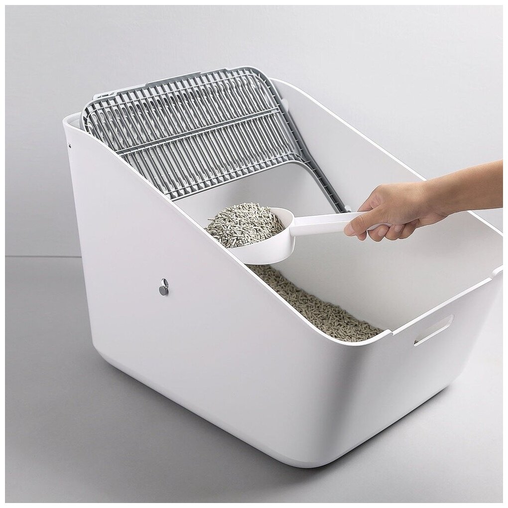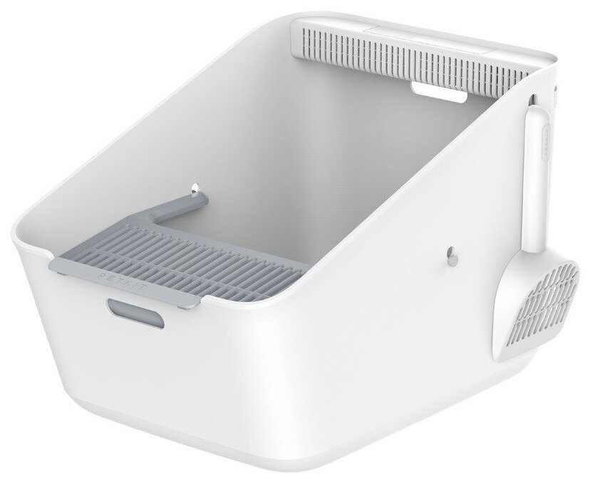 - В комплект входит туалетный совок, который удобен в использовании и легко моется. Наименование продукта - лоток для кошек с автоматическим очистителем воздуха Размер - 507 * 374 * 350 (мм)