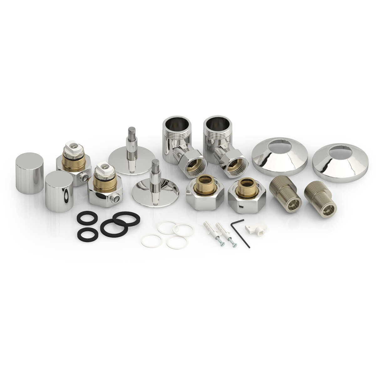 Полный комплект для водяного подключения полотенцесушителя через угловые элементы с узлами для сброса воздуха.