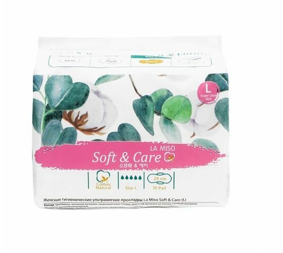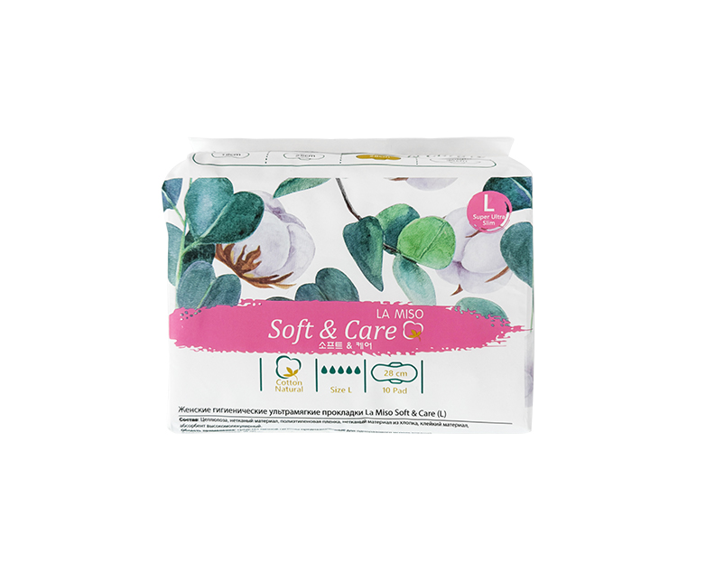 Женские гигиенические ультрамягкие прокладки Soft & Care размер L 10 шт La Miso (ЭХ99989436389)