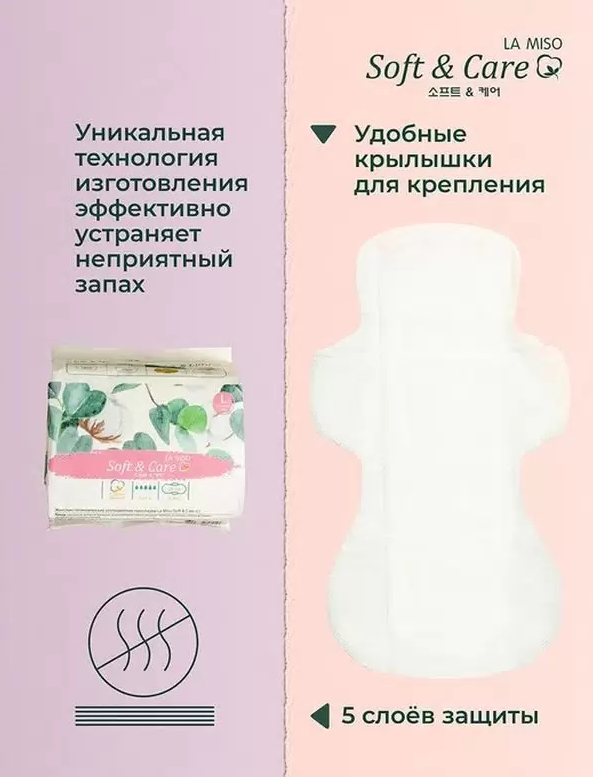 На сегодняшний день товар «Женские гигиенические ультрамягкие прокладки Soft & Care размер L 10 шт La Miso (ЭХ99989436389)» можно купить с кешбеком в 1 магазине: Яндекс.Маркет