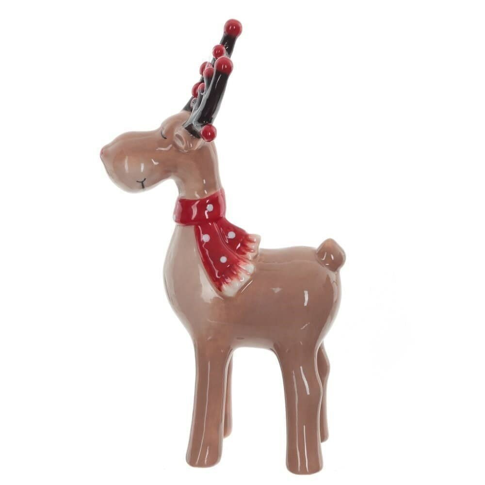 Замечательная керамическая фигурка веселого Оленя для новогоднего и рождественского оформления. Может уютно расположиться на камоде, украсить новогодний стол или стать дополнением к подарку друзьям и близким.