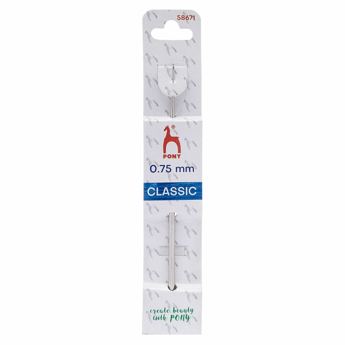 Длинный крючок от PONY специально предназначен для тунисского вязания. Тунисский крючок PONY позволяет вязать плотное трикотажное полотно, которое отлично держит форму. Таким крючком вяжут оригинальные свитера, кардиганы, покрывала, сумки. Изготовлен из практичного алюминия. Благодаря электролитическому оксидированию металла крючок имеет оптимальную для вязания гладкую поверхность, отличается высокой прочностью и упругостью, идеально защищен от коррозии. При этом светлая шерстяная пряжа от соприкосновения с ним не темнеет. Удобный пластиковый наконечник препятствует роспуску набранных петель, что позволит вязать с абсолютным комфортом. Длина: 30 см.Диаметр: 2 мм.