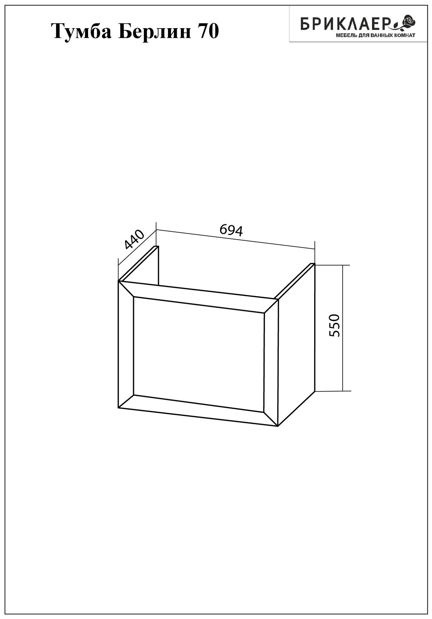 Тумба под раковину Бриклаер Берлин 69.4 4627125416149, цвет: оникс серый. Ручка приобретается отдельно.