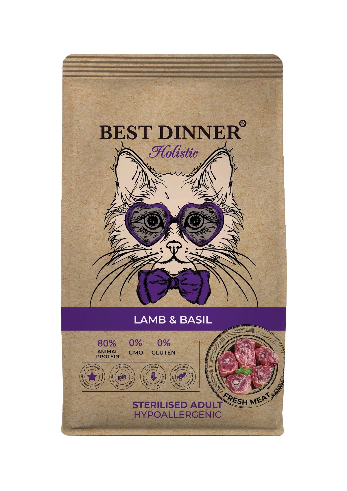 Best Dinner Holistic Adult Sterilised сухой корм для стерилизованных кошек (Ягненок и базилик 15 кг.)