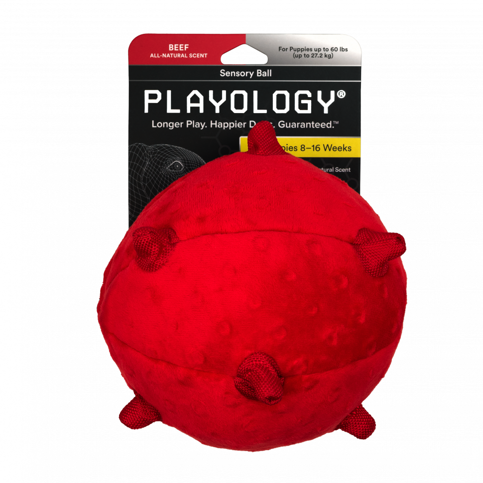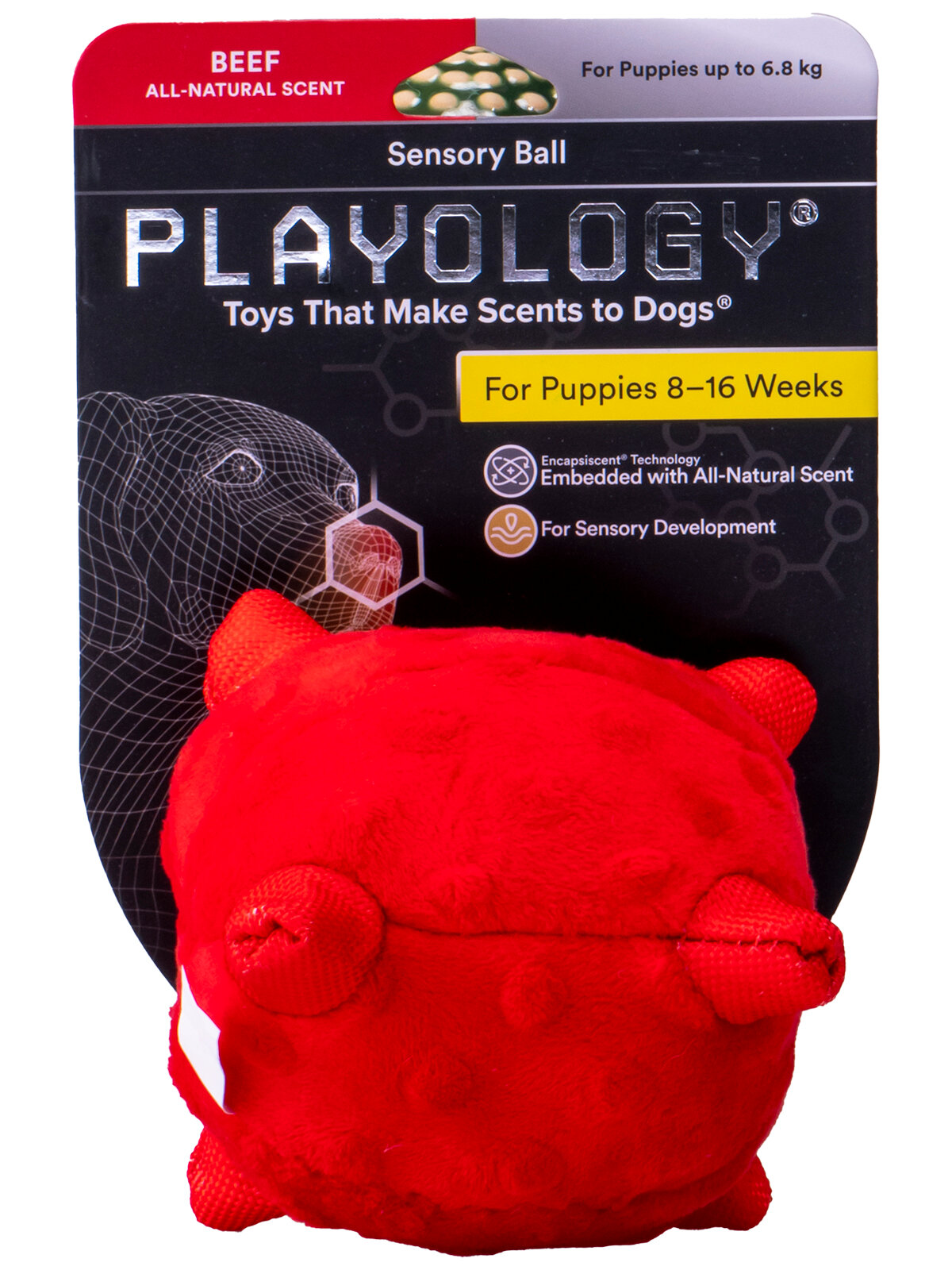 Playology Puppy Sensory Ball сенсорный плюшевый мяч с ароматом говядины (15 см. Красный)