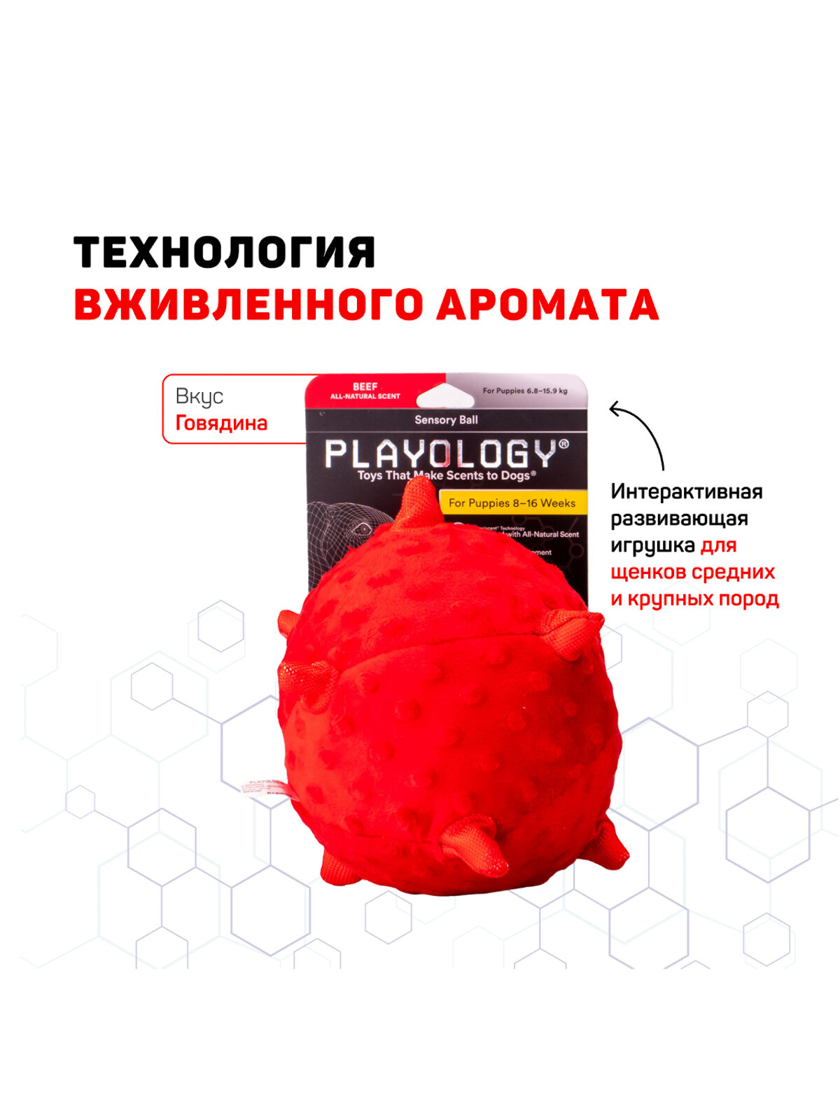 Гарантирует длительный интерес у собаки. Playology разрабатывает ароматизированные игрушки, изготовленные из безопасных для собак материалов, которые занимают собаку в 7 раз дольше, чем игрушка без запаха. Вашему щенку понравится очаровательный полностью натуральный аромат этого мячика. Сенсорные игрушки для щенков продуманно разработаны с уникальными текстурами и звуками, которые способствуют раннему сенсорному развитию питомца. Созданная с учетом максимальной прочности и стойкой к проколам конструкции, эта игрушка будет гораздо сильнее увлекать вашего щенка, чем другие плюшевые игрушки. Выпускается с различными аппетитными ароматами, что позволяет найти комбинацию, которая наилучшим образом соответствует размеру и пристрастиям вашей собаки.