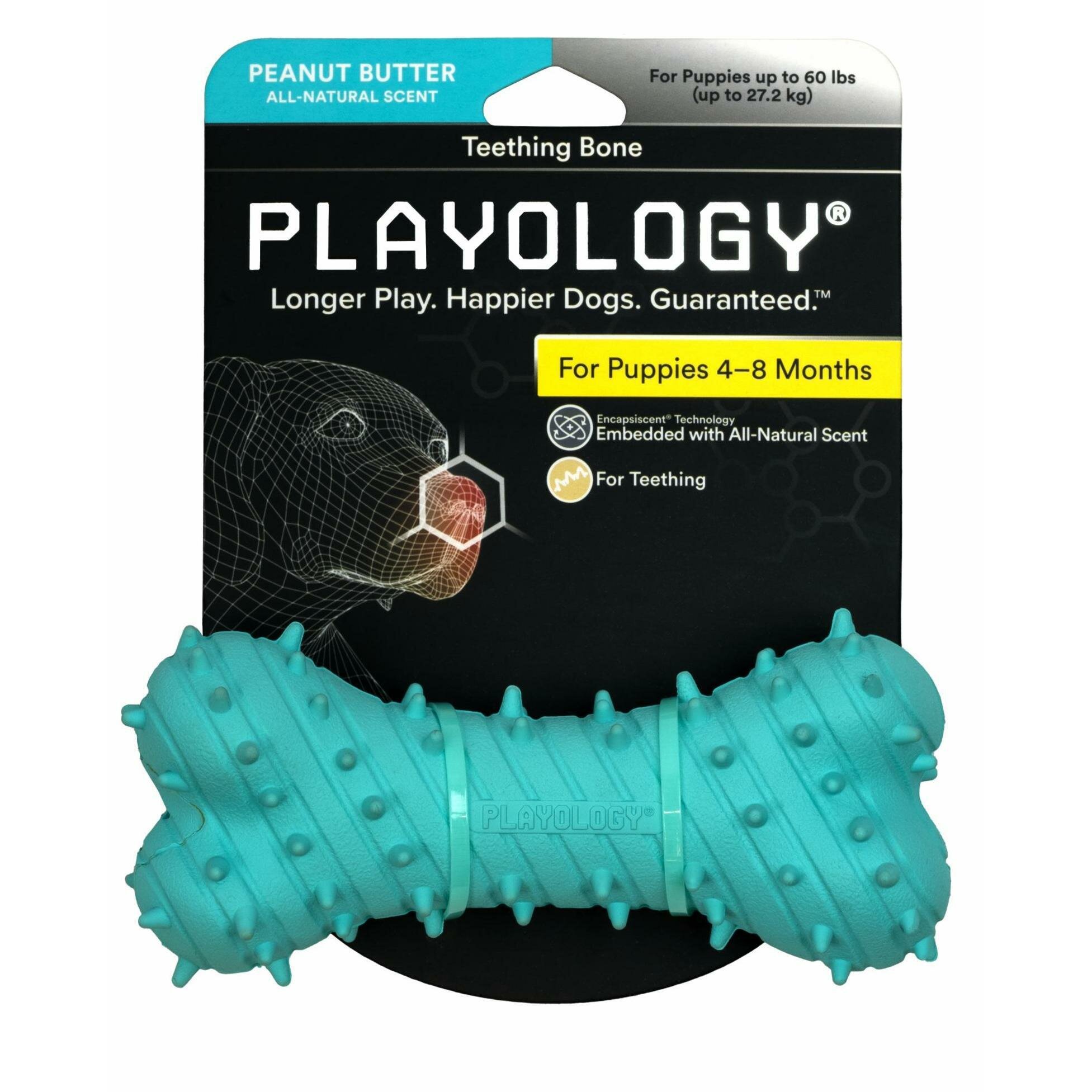 Playology Puppy Teething Bone дентальная жевательная косточка с ароматом арахис (Голубой)