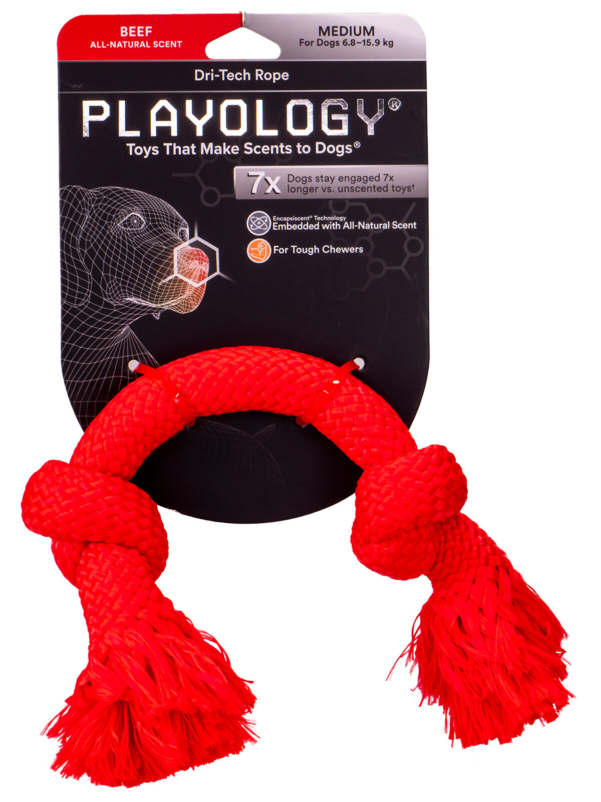 Гарантирует длительный интерес у собаки. Playology ® разрабатывает ароматизированные игрушки, изготовленные из безопасных для собак материалов, которые занимают собаку в 7 раз дольше, чем игрушка без запаха. Канат Dri-Tech обладает соблазнительным, натуральным запахом и прочной технологией формованного волокна, которая предотвращает разрыв веревки на длинные куски, которые могут быть опасны для вашего питомца при проглатывании. Подобно спортивной одежде, игрушки-канаты Dri-Tech отводят слюну, чтобы игра в перетяжку оставалась сухой, а сама игрушка — без запаха. Веревка-канат подходит для собак всех возрастов, как для малогрызущих собак и тех, кто грызет очень активно.