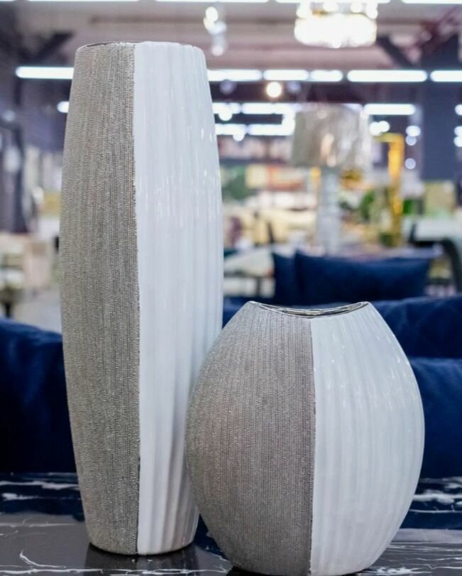 Ваза керамическая белая с серебром (18H2889-20) Garda Decor