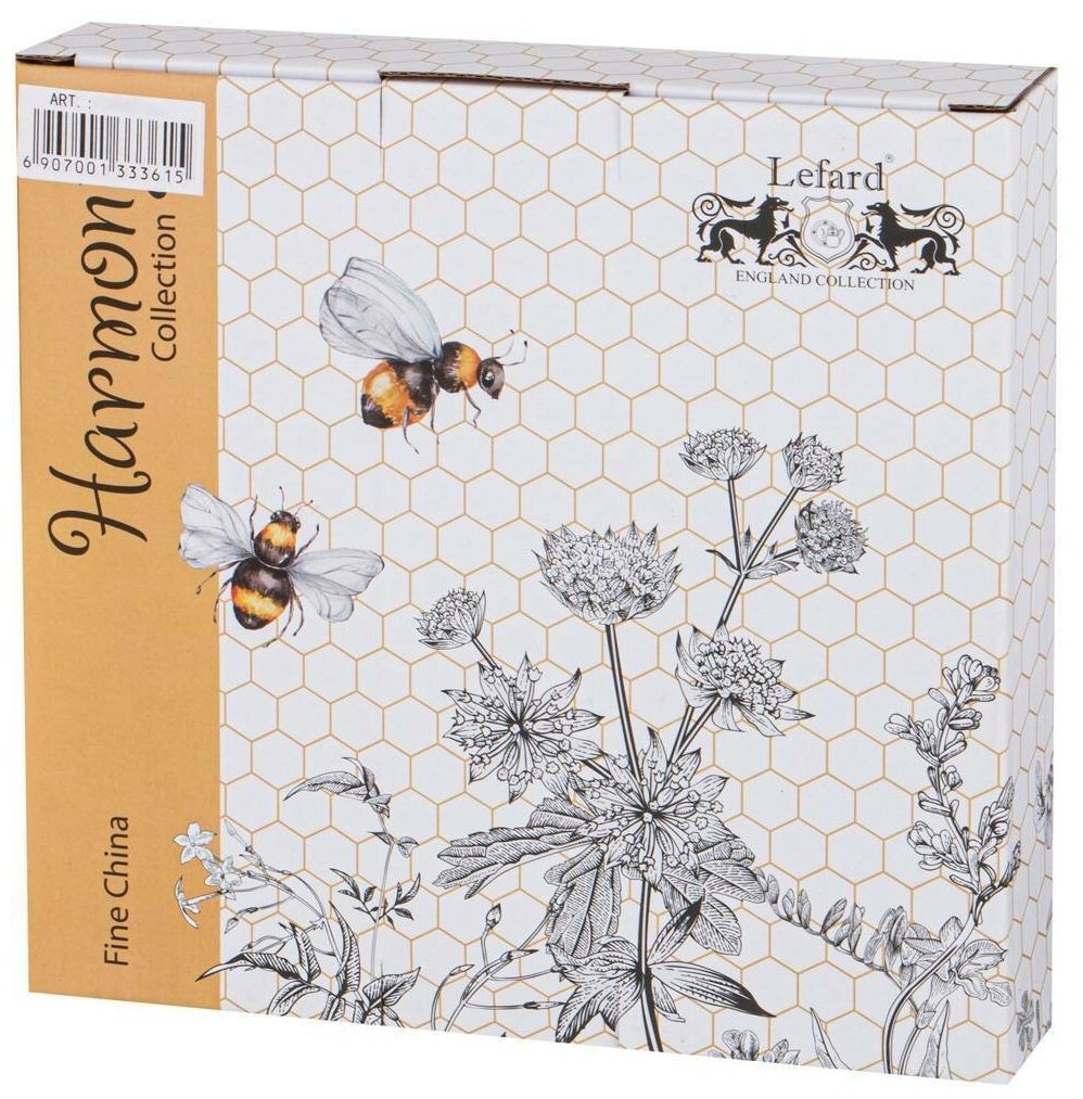 Набор тарелок обеденных LEFARD "HARMONY" 2 ШТ. 27 СМ ТМ Lefard коллекция “Гармония” как символ гармонии земного и духовного: трудолюбия, порядка, бесстрашия, соединенных с мудростью, осмысленностью, ясностью и бессмертием. Пчелка – это душа человека неразрывно связанная со всеми близкими и дорогими. Она всегда оберегает от опасности и способствует счастью и удаче. Посуда выполнена из качественного фарфора. Монохромная деколь с золотой окантовкой, изящество и стиль в каждой форме. Индивидуальная упаковка. Отличный подарок. Радуйте себя, родных и близких подарками. Продукция прошла сертификацию, безопасна для контакта с пищевыми продуктами. Нельзя использовать в микроволновой печи, не рекомендуется мыть в посудомоечной машине во избежание повреждения золотой деколи.