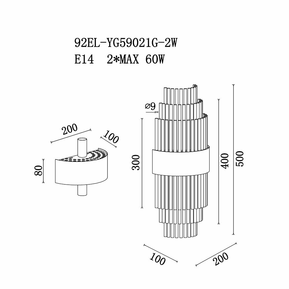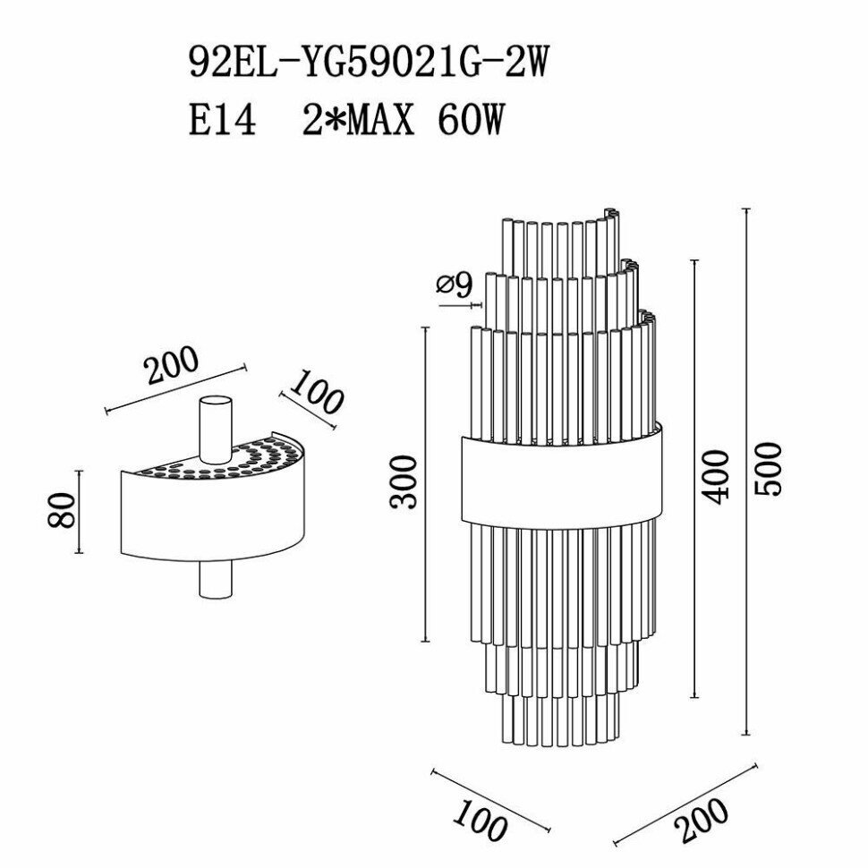 | Номенклатура | 92EL-YG59021G-2W Бра латунь, стекло прозр. 20*10*h.50см |