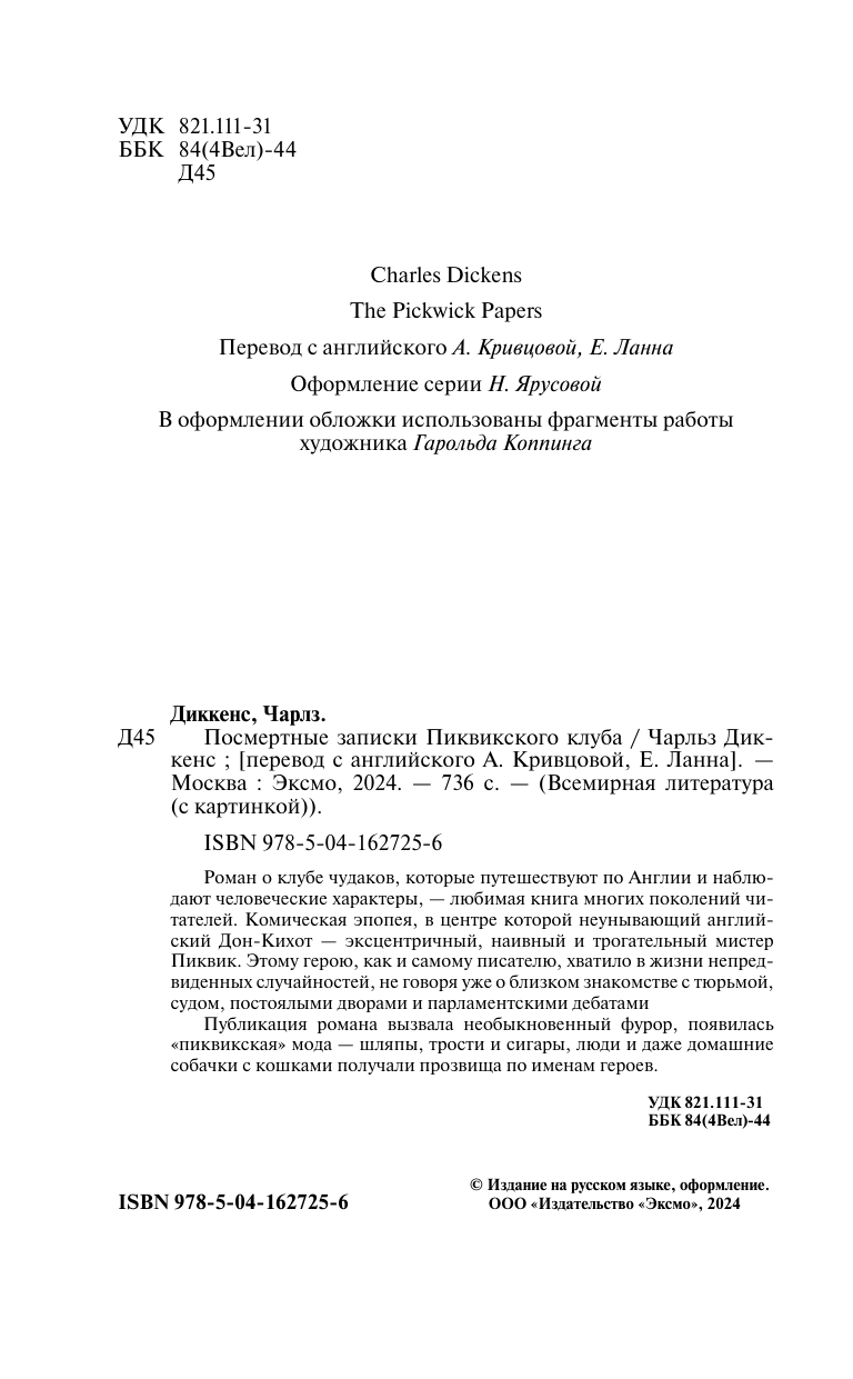Посмертные записки Пиквикского клуба (Чарльз Диккенс); Эксмо, Редакция 1, 2024