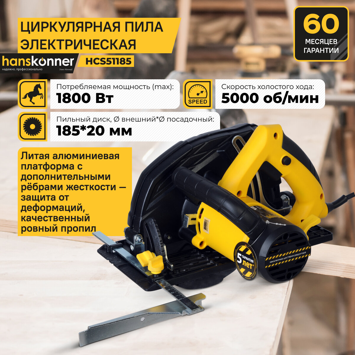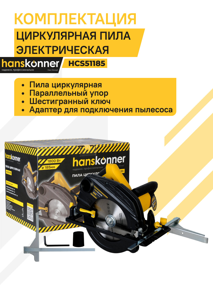 пила циркулярная HANSKONNER HCS51185 185х20мм 1800Вт