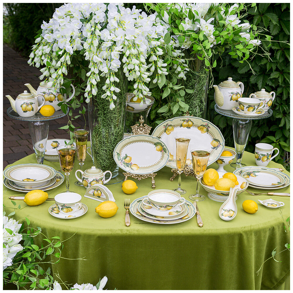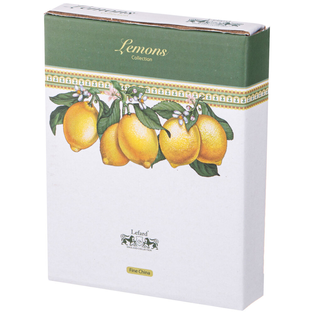 ТМ LEFARD авторская коллекция «Лимоны» - это вкус и элегантность в сервировке стола и несомненное украшение в интерьере кухни. Изделия выполнены из тонкого, легкого и прочного магнезийного фарфора, способны красиво звучать. При постукивании деревянной палочкой по стенкам фарфоровой чашки она отзовется долгим чистым звуком, как если бы вы держали в руке колокольчик. Красивая деколь, сочетающая оригинальный орнамент с выразительными лимонами. Натуральные, приятные глазу оттенки, всегда в тренде. Мягкие формы и удобные размеры и объемы посуды помогут сервировать стол и создадут непринужденную домашнюю атмосферу. Красочная упаковка. Прекрасный подарок. Продукция прошла сертификацию и безопасна для контакта с пищевыми продуктами. Можно смело мыть в посудомоечной машине с применением мягких моющих средств, использовать в микроволновой печи