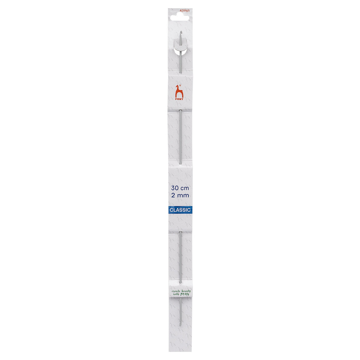 Длинный крючок от PONY специально предназначен для тунисского вязания. Тунисский крючок PONY позволяет вязать плотное трикотажное полотно, которое отлично держит форму. Двусторонняя конструкция позволяет одновременно работать с пряжей нескольких видов и цветов, создавать уютные вещи с эффектным дизайном. Таким крючком вяжут оригинальные свитера, кардиганы, покрывала, сумки. Изготовлен из практичного алюминия. Благодаря электролитическому оксидированию металла крючок имеет оптимальную для вязания гладкую поверхность, отличается высокой прочностью и упругостью, идеально защищен от коррозии. При этом светлая шерстяная пряжа от соприкосновения с ним не темнеет. Удобный пластиковый наконечник препятствует роспуску набранных петель, что позволит вязать с абсолютным комфортом. Длина: 30 см.Диаметр: 5 мм.