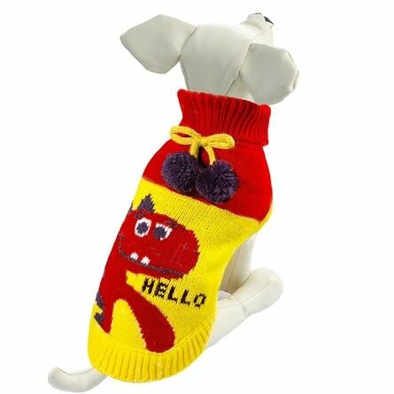 Теплый и оригинальный свитер с изображением дракончика - это удобный и функциональный аксессуар для собак, который просто незаменим в холодную погоду. Изделие защитит вашего питомца от ветра и согреет в непогоду. Свитер имеет стильный дизайн, а универсальный фасон не стесняет движений питомца во время прогулки. Вывязанная резинка по всему периметру низа изделия обеспечивает плотное прилегание свитера к телу, ворот украшен помпонами. Такой свитер с модным принтом станет украшением гардероба вашего питомца.