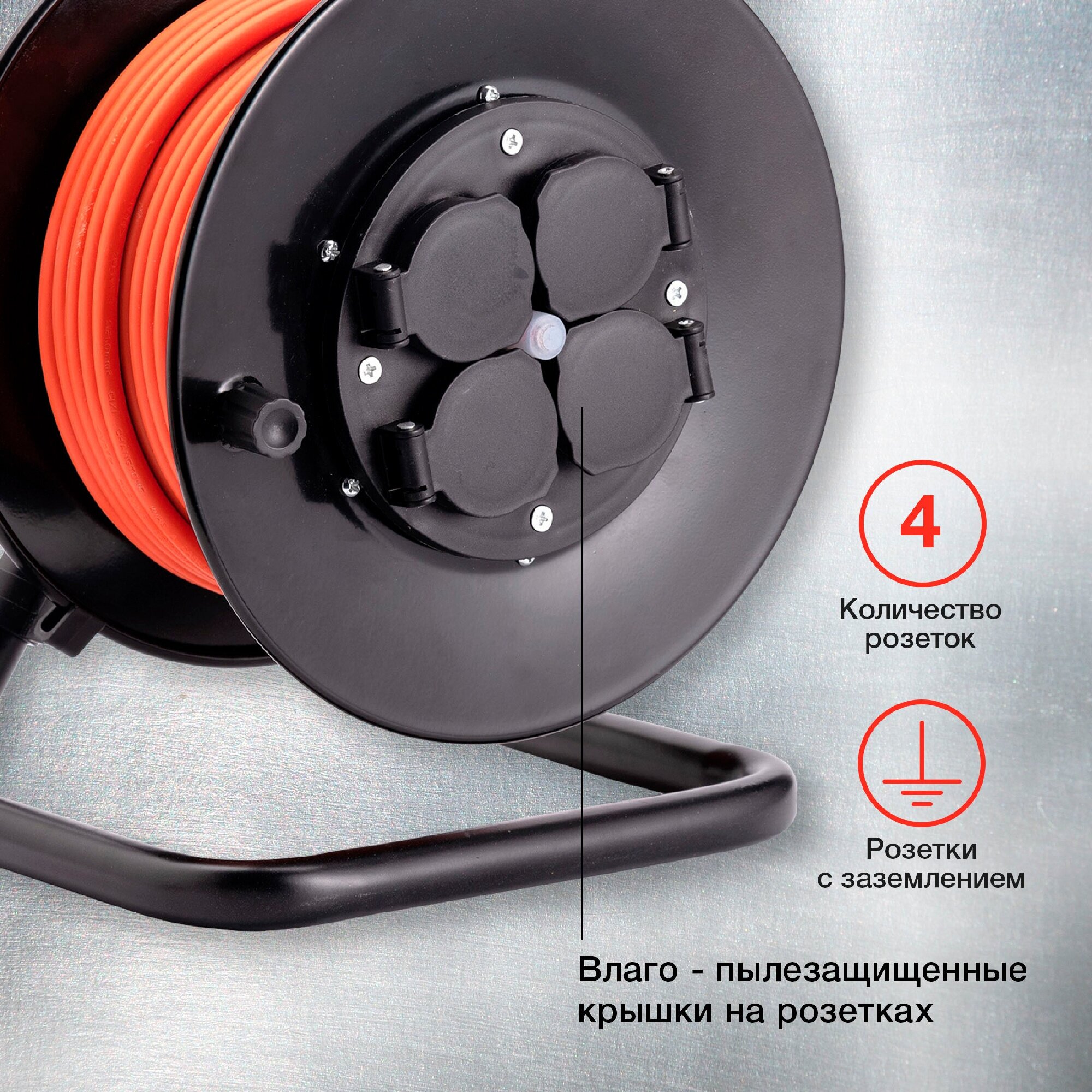 | Прочие особенности и свойства | ST-PSR4.30/G-20 — это силовой удлинитель на эргономичной катушке, которым удобно пользоваться., , Максимальная мощность электрического тока, который может пройти по кабелю данной модели — 4500 Вт с силой тока до 20 А. Эти характеристики делятся между четырьмя розетками, каждая из которых надежно защищена от проникновения пыли и влаги специальной крышкой. Прибор оснащён системой, делающей его устойчивым к перегрузкам, и заземлением, препятствующим случайным ударам током., , Каждая жила внутри кабеля данной модели заизолирована собственной оплёткой, а внешний материал, устойчивый к воздействиям окружающей среды, позволяет защитить их не только от проникновения жидкости, но и от резких перепадов температуры. Устройство работает даже в сложных климатических и погодных условиях, внутри помещений и снаружи. Медь, выступающая в качестве проводника в ST-PSR4.30/G-20, является стандартом для подобных приборов., , На торце ST-PSR4.30/G-20 расположен держатель для вилки, а на верхней части силового удлинителя находится удобная ручка. Катушка при надобности фиксируется на эргономичной и устойчивой подставке. Она облегчает разматывание и сматывание удлинителя. |