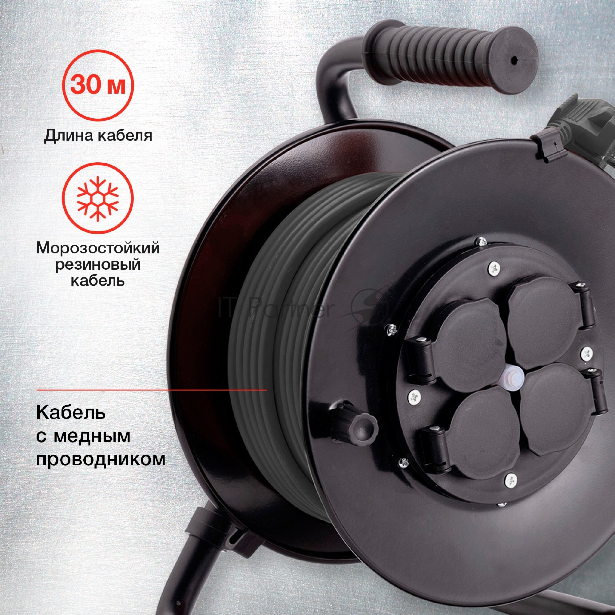 Удлинитель силовой Starwind ST-PSR4.30/FRG-20 3x2.0кв.мм 4розет. 30м КГ 20A катушка черный