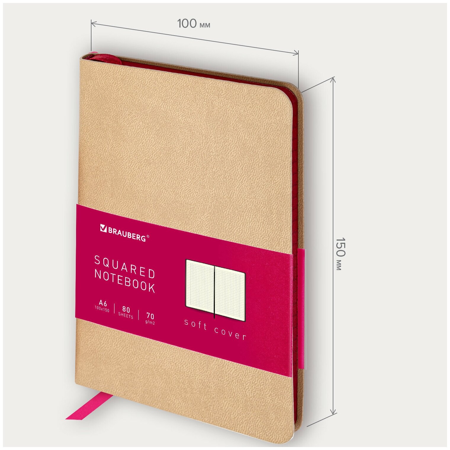 Мягкая интегральная обложка стилизована под кожу. Имеет закругленные уголки. Подходит для горячего тиснения. 80 листов позволят зафиксировать большой объем информации. Линовка блока в клетку (5х5 мм) дает возможность аккуратно заполнить цифровые значения, а также нанести чертежные зарисовки. Внутренний блок выполнен из офсета тонированного цвета плотностью 70 г/м2 и крепится к обложке с помощью книжного переплета. Срез и форзац блокнота окрашены на контрасте цвета обложки, что придает блокноту изысканность и шарм. Дополнением является закладка-ляссе, с помощью которой при необходимости можно быстро открыть нужную страницу. Формат блокнота А6 (100х150 мм) позволит владельцу поместить его в кейс или сумку малых габаритов.