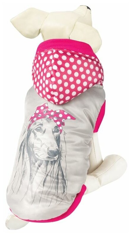 Утепленная попона "Красотка" с капюшоном для комфортных прогулок даже в самую ненастную погоду. Попона украшена оригинальным принтом на спине. Застегивается при помощи трех заклепок на животе. Подкладка: флис.