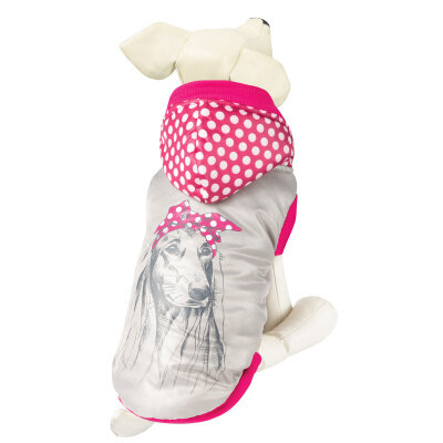 Утепленная попона "Красотка" с капюшоном для комфортных прогулок даже в самую ненастную погоду. Попона украшена оригинальным принтом на спине. Застегивается при помощи трех заклепок на животе. Подкладка: флис.