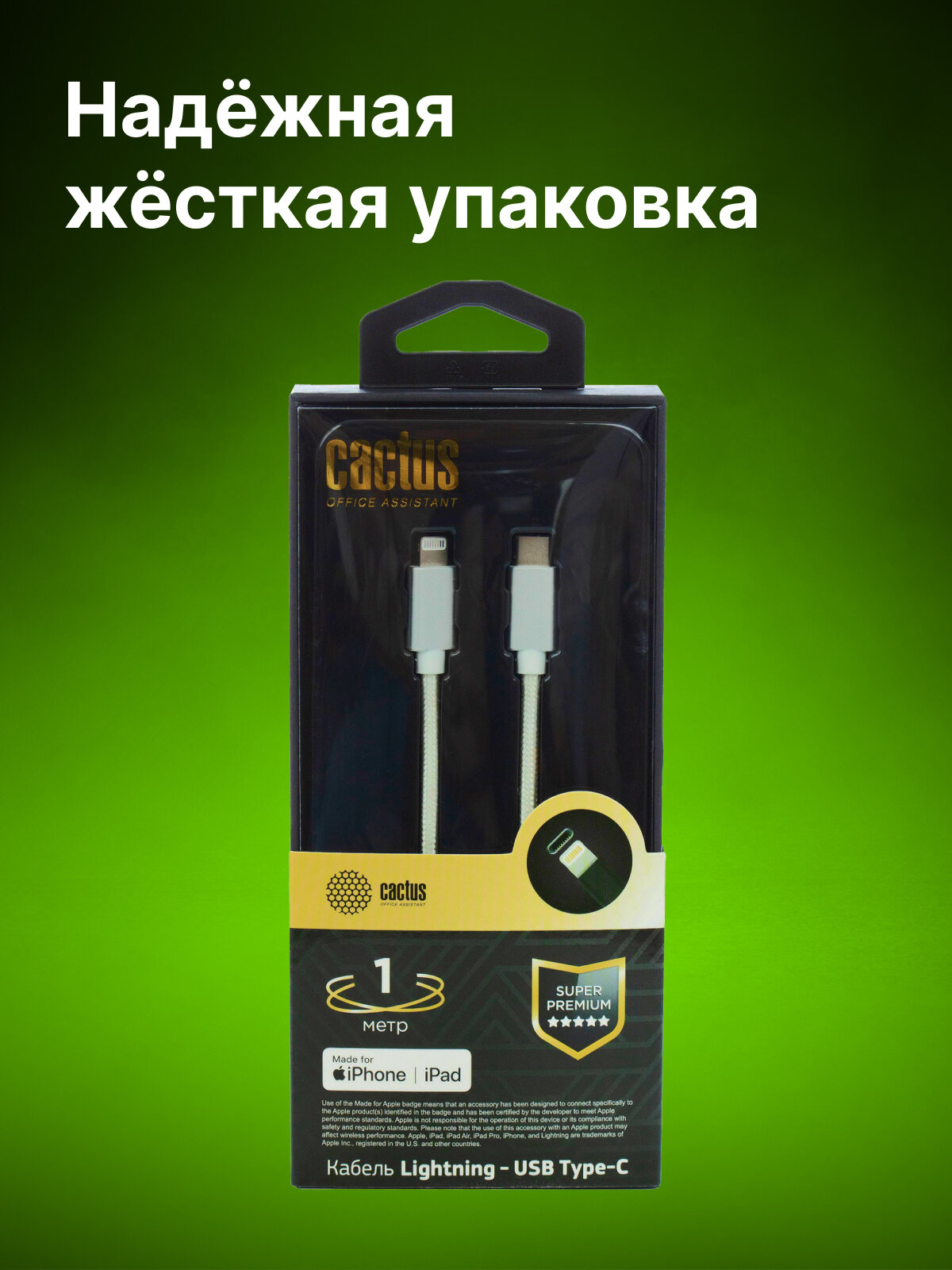 Кабель Cactus CS-LG.USB.C-1 белый, коннекторы USB Type-C (m)-Lightning (m), длина 1м