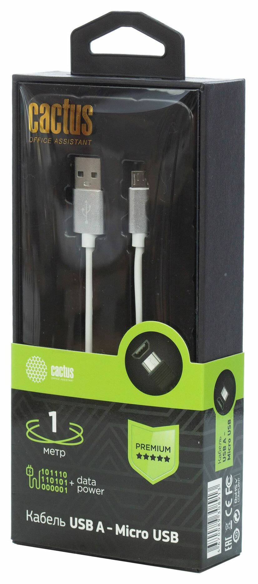 Кабель Cactus CS-USB.A.USB.MICRO-1 белый, коннекторы USB Type-C (m)-micro USB (m), длина 1м