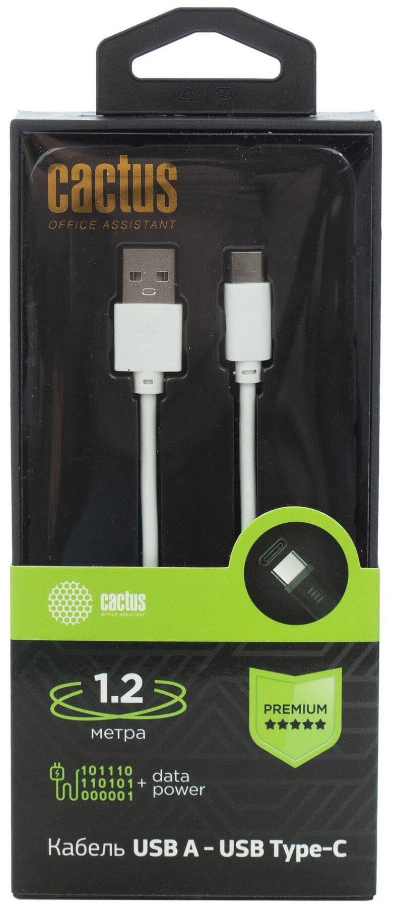 Кабель Cactus CS-USB.A.USB.C-1.2 USB (m)-USB Type-C (m) 1.2м белый блистер